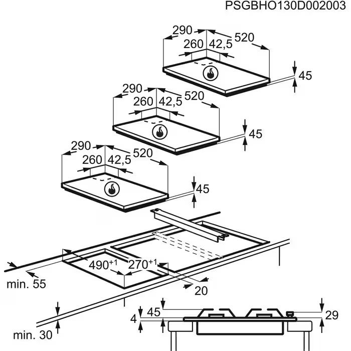 Варильна поверхня Electrolux газова на склі, 30см, чавун, Доміно, чорний