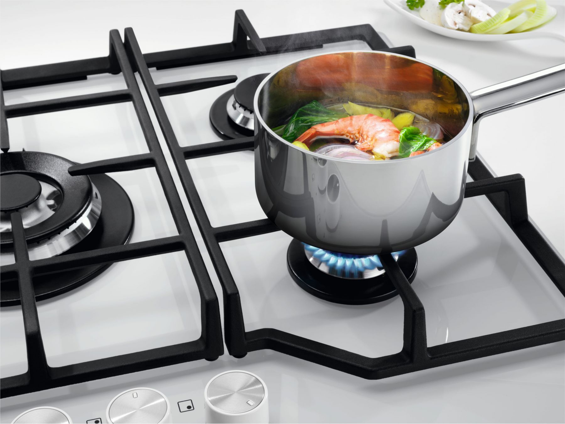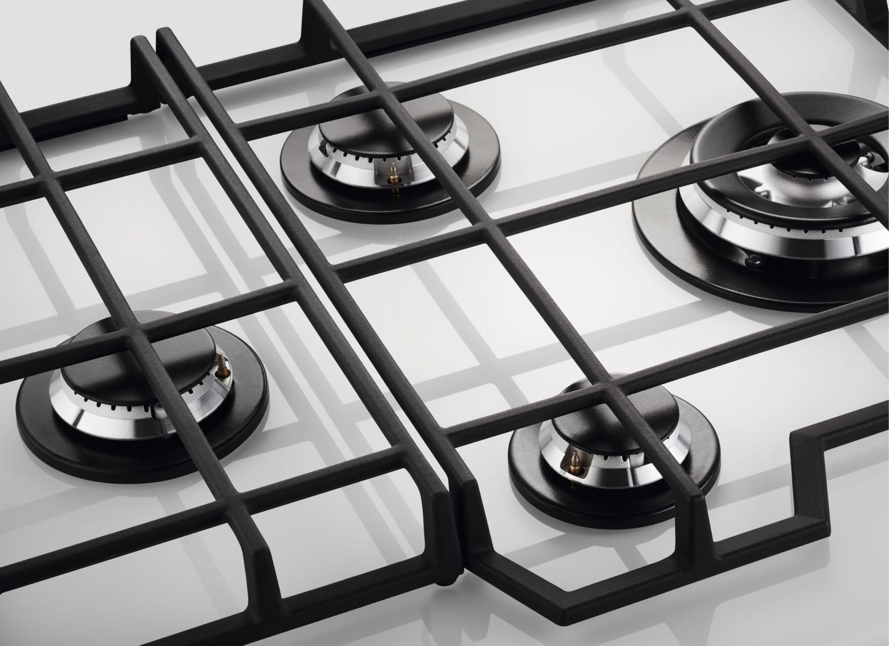 Варильна поверхня Electrolux газова на склі, 60см, чавун, білий