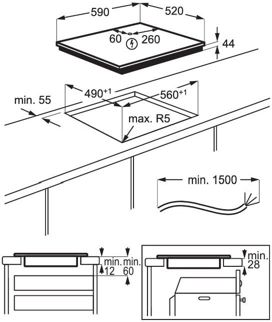Розміри для вбудовування (ШхГ):560х490