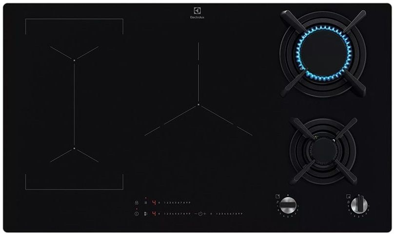 Варильна поверхня Electrolux комбінована (2 газ + 3 інд), 90см, розширена зона, чавун, чорний