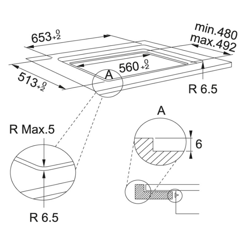 Розміри для вбудовування:560–590 × 490–510