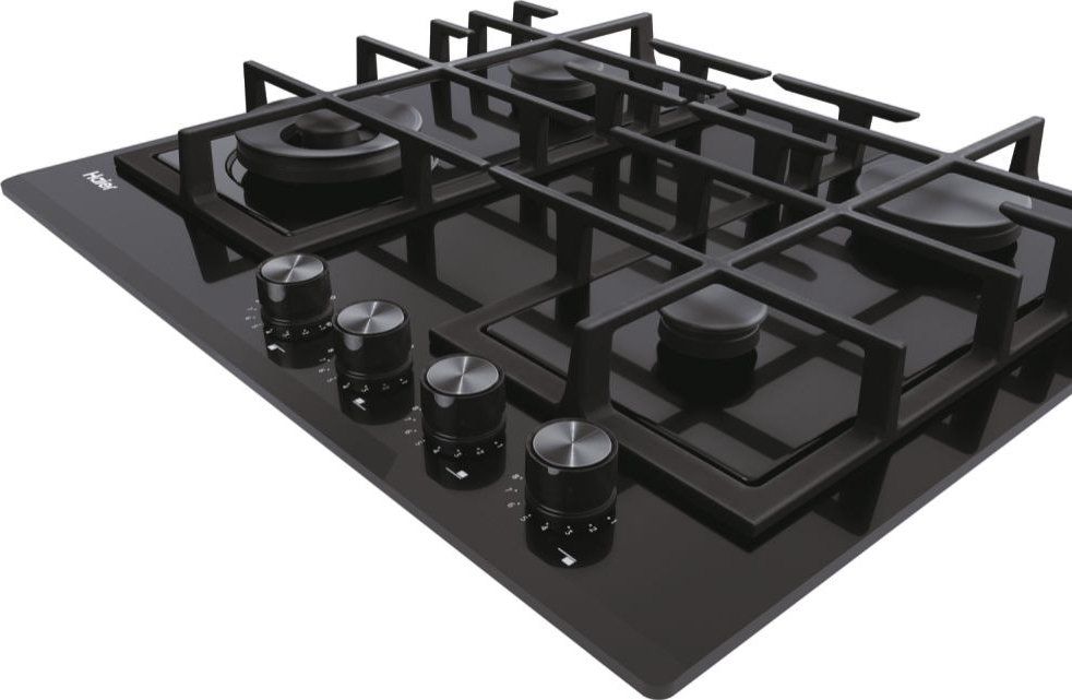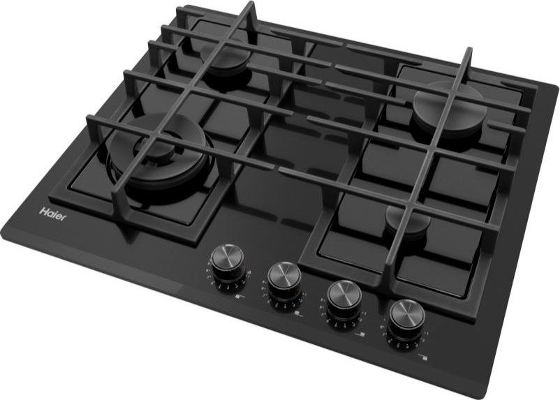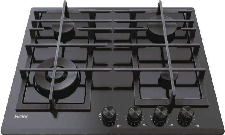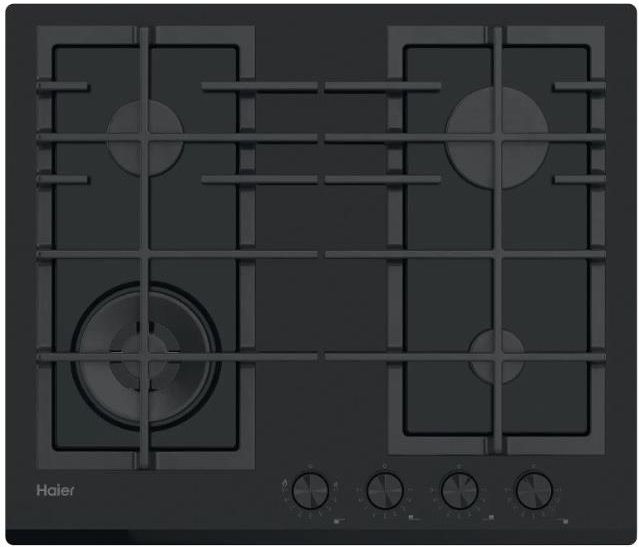 Варильна поверхня Haier газова, 60см, чавун, конфорка з подвійним рядом полум'я, чорний