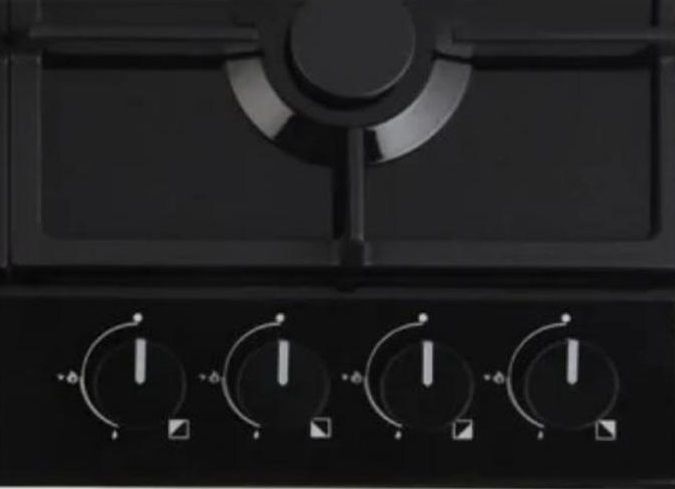 Газова варильна поверхня Hansa BHGS630502, 60 см, чорна емаль. Оснащена 4 конфорками, чавунними решітками, газ-контролем і підпалом у ручках.