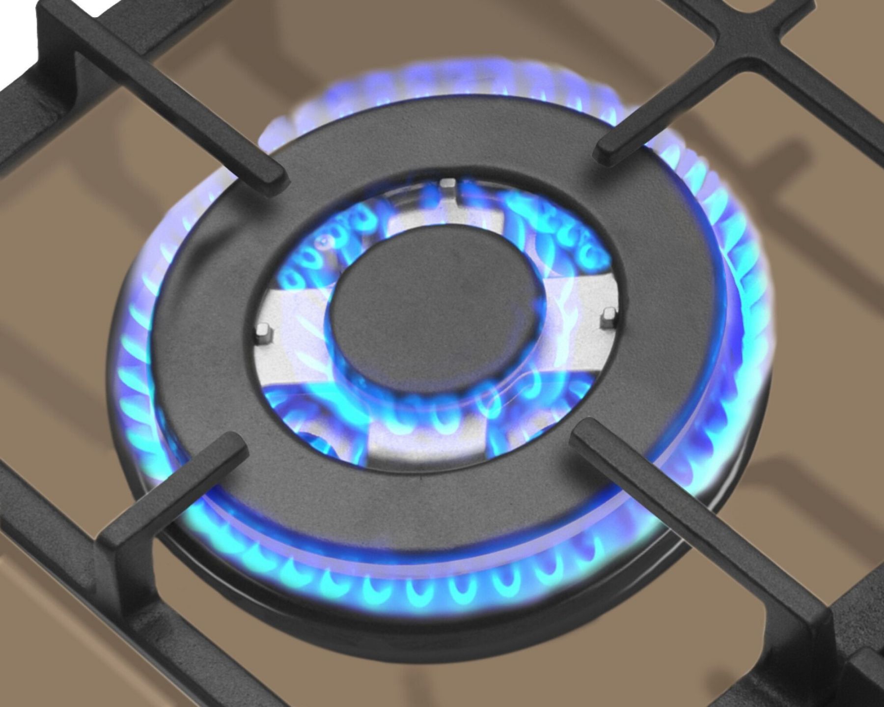Газова варильна поверхня Hansa BHKY61139 — стильна та надійна модель із бежевого загартованого скла шириною 59 см. Має чотири конфорки, зокрема одну WOK-конфорку з потрійним рядом полум’я для швидкого нагрівання. Оснащена електропідпалом у поворотному регуляторі та газ-контролем для безпеки при затуханні вогню. Чавунні решітки забезпечують стійкість посуду і легко миються. Ідеальна для сучасної кухні, забезпечуючи ефективність і безпеку під час приготування.