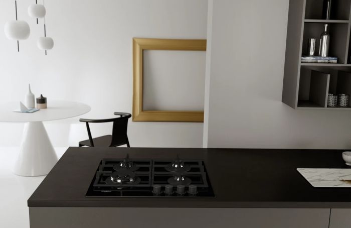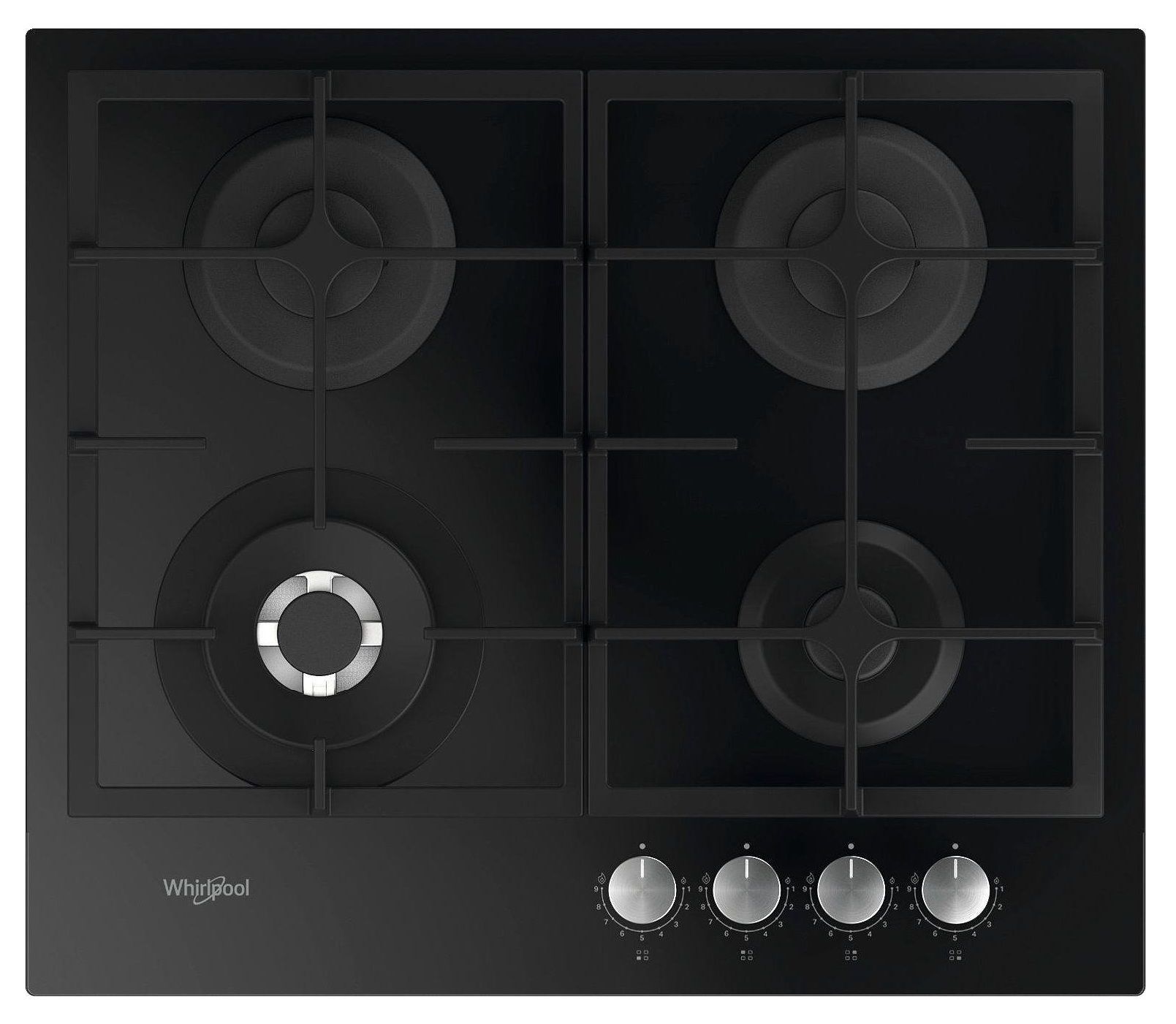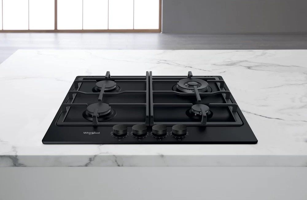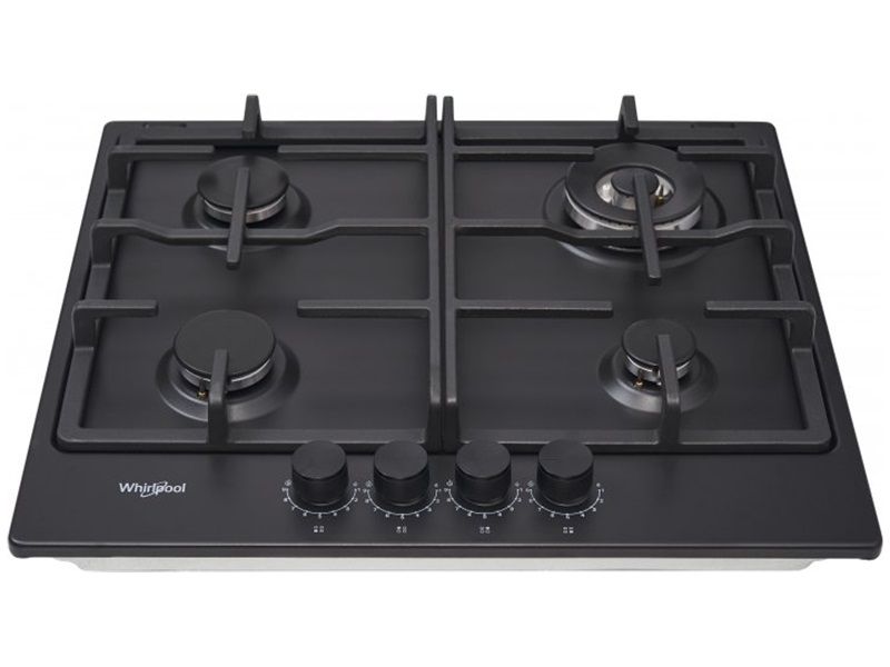 Варильна поверхня Whirlpool газова, 60см, чавун, конфорка з подвійним рядом полум'я, чорний