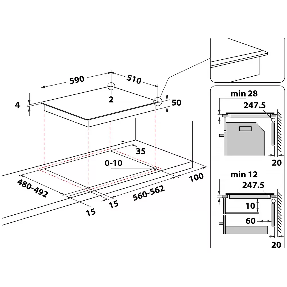 Розміри для вбудовування:28-60 х 560-562 х 480-492