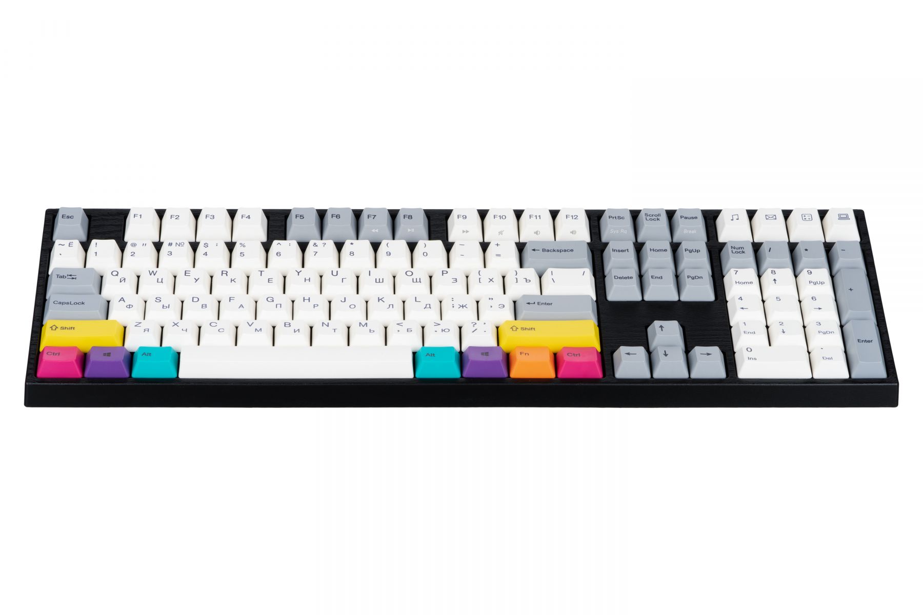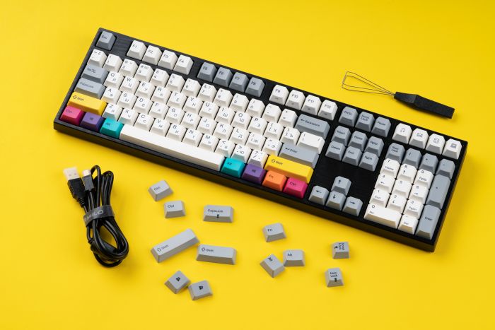 В даній моделі основним кольором є холодний білий, майже всі клавіші модифікатори представлені в сірому кольорі, тоді як клавіші shift/ctrl/windows/alt/fn мають жовтий/рожево-червоний/фіолетовий/блакитний/помаранчевий кольори відповідно (в комплекті є додаткові вищеперелічені клавіші в сірому кольорі, а також Caps Lock і Scroll Lock з прорізами під світлодіоди). Корпус виконаний з якісного пластика, а верхня панель, розташована під перемикачами, має яскраво виражену текстуру.