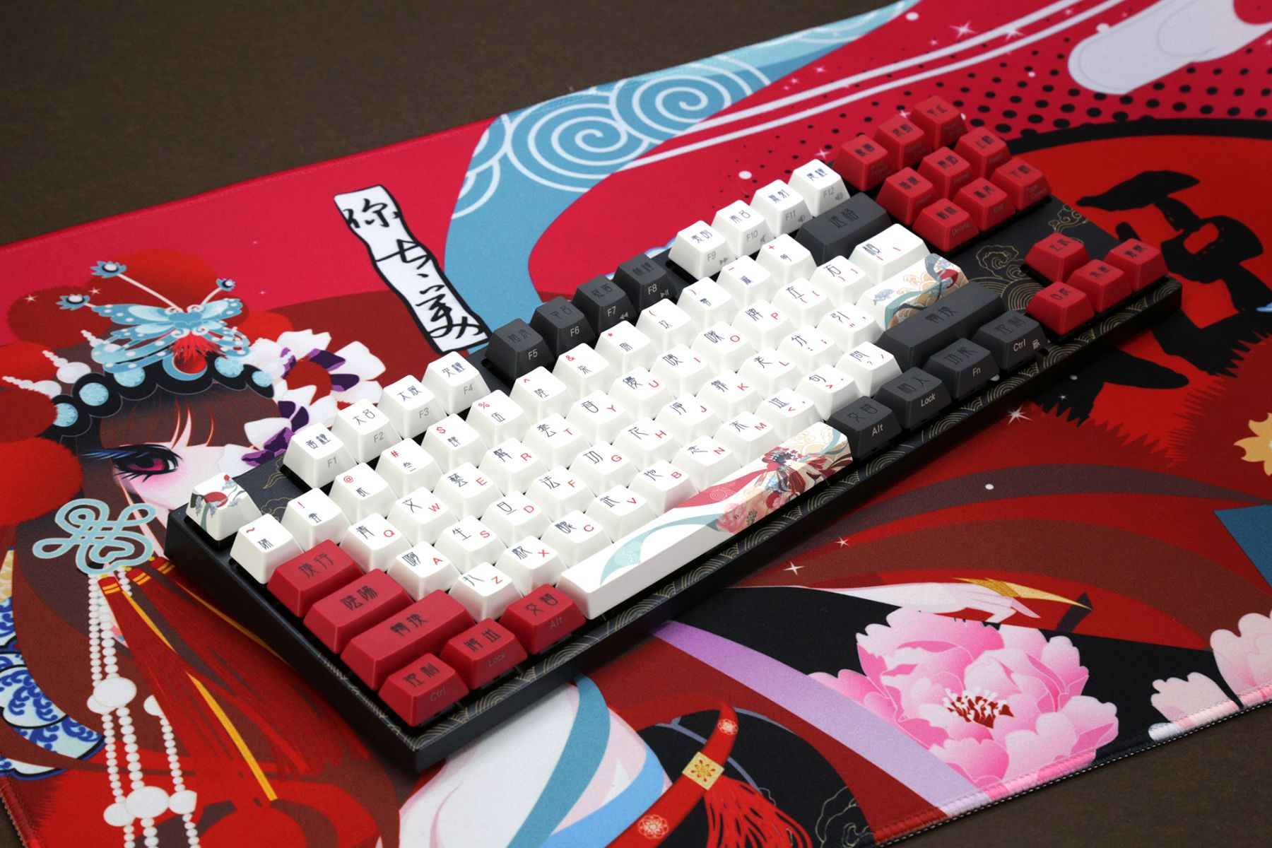 Компактна клавіатура Varmilo MA87M V2 Peking Opera має оригінальний дизайн. Ковпачки виготовлені з високоміцного пластика PBT із застосуванням dye-sublimation технології з вигравіруваними символами на боках, використання dye-sub дозволяє символам ніколи не стертися і ніяк не відчуватися при натисканні, а якісний PBT пластик гарантує надійність і довговічність, клавіші мають злегка текстурований верх і приємні на дотик.