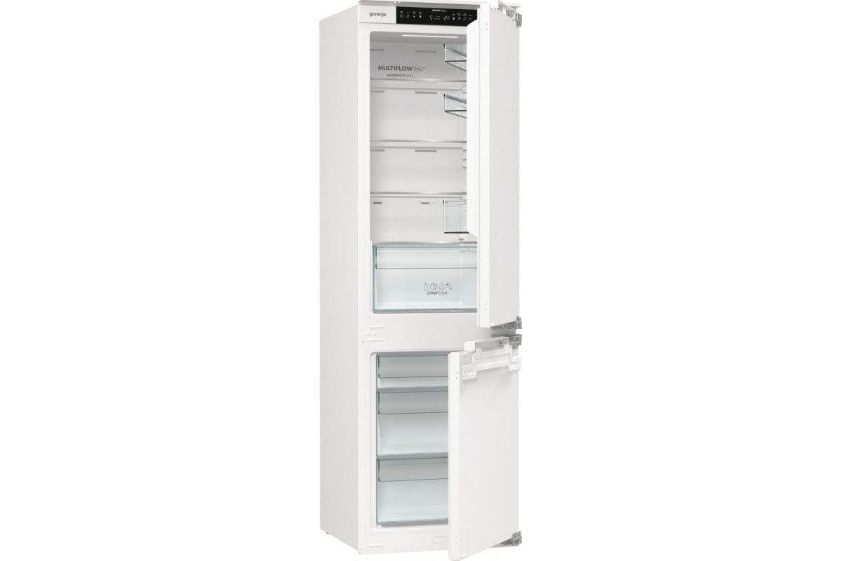 Вбудований холодильник Gorenje NRKI517E42 розрахований на інтеграцію в кухонні меблі висотою 177 см. Загальний об’єм 252 л включає 176 л холодильної та 76 л морозильної камери. Система NoFrost Plus у поєднанні з Multi Air Flow забезпечує рівномірне охолодження без утворення інею. Жорстке кріплення фасадів із шарніром SoftClose підтримує точне та плавне закривання дверцят.