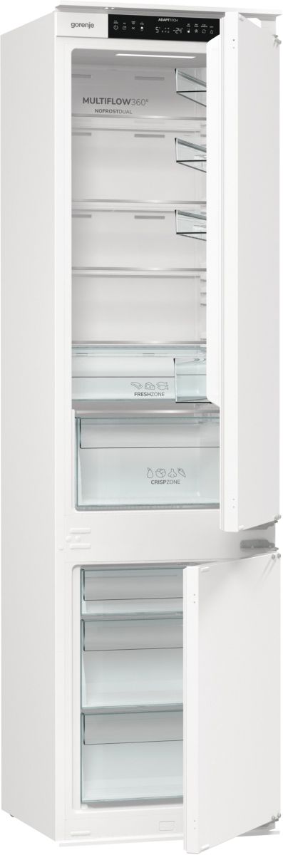 Вбудований холодильник Gorenje NRKI519E41 поєднує продуману організацію простору та стабільне охолодження. Загальний об’єм 284 л включає 208 л холодильної та 76 л морозильної камери. Система NoFrost Plus і циркуляція Multi Air Flow підтримують рівномірну температуру без утворення інею. Електронне керування з окремим LED-дисплеєм забезпечує точний контроль параметрів.
