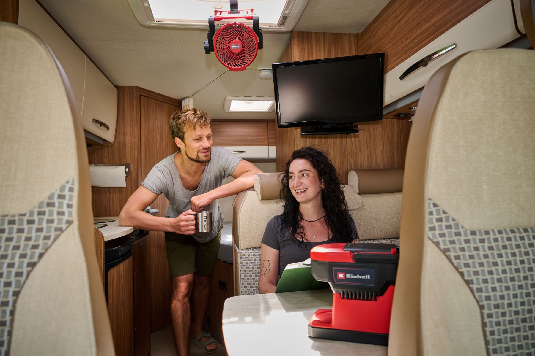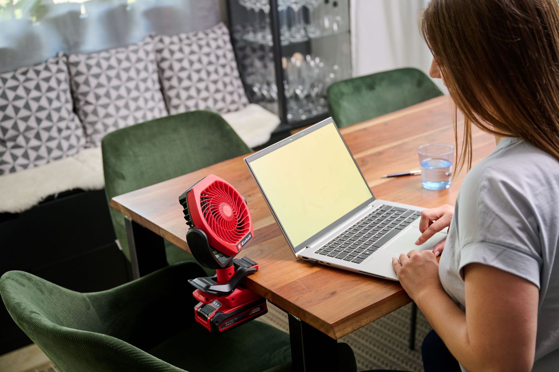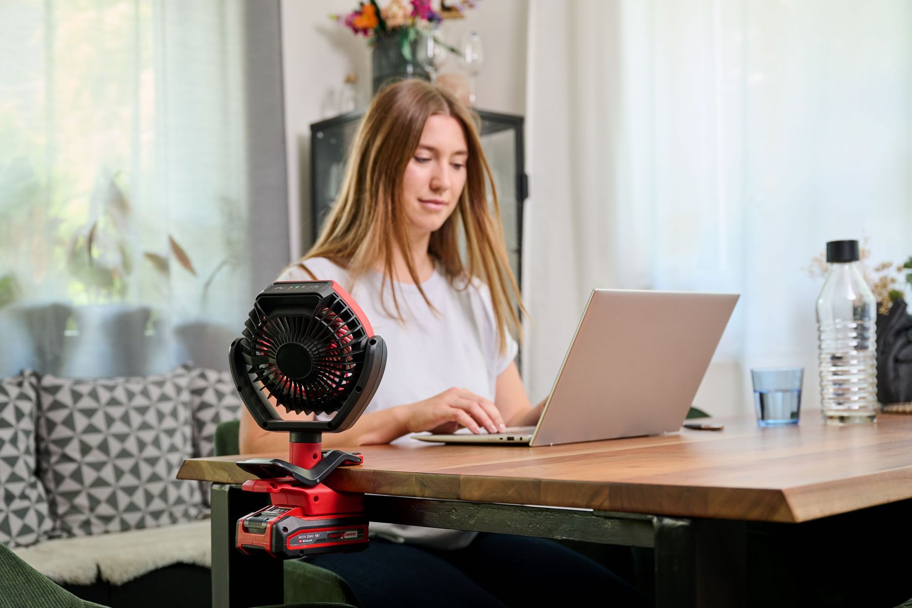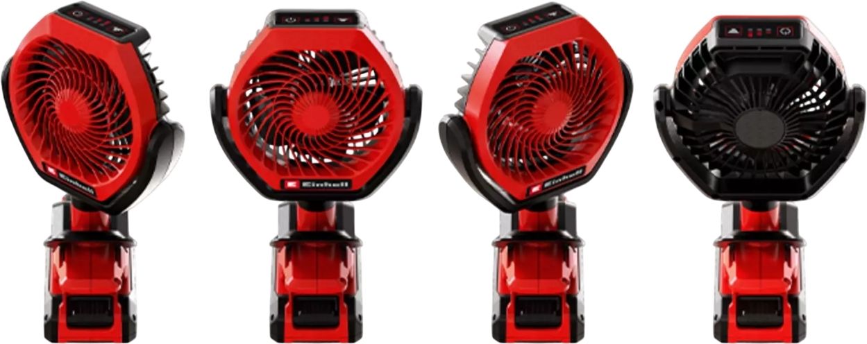 Акумуляторний вентилятор Einhell GC-CF 18/110 Li - Solo дарує ковток свіжого повітря. Акумуляторний пристрій можна використовувати де завгодно, і він забезпечує прохолодний вітер у будь-який час. Вентилятор є членом сімейства Power X-Change. Пристрій працює від безщіткового двигуна Einhell. Цей безщітковий двигун забезпечує більшу потужність і довший час роботи, ніж звичайні двигуни з вугільними щітками.