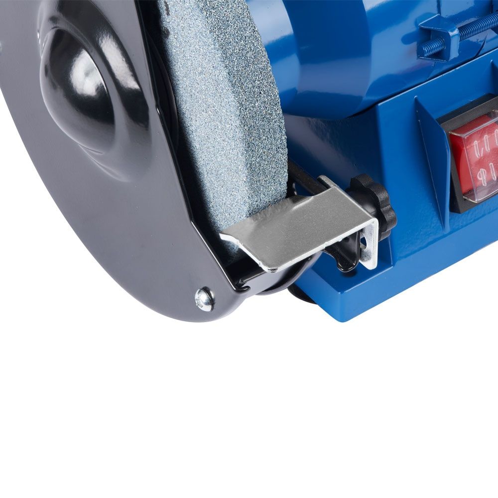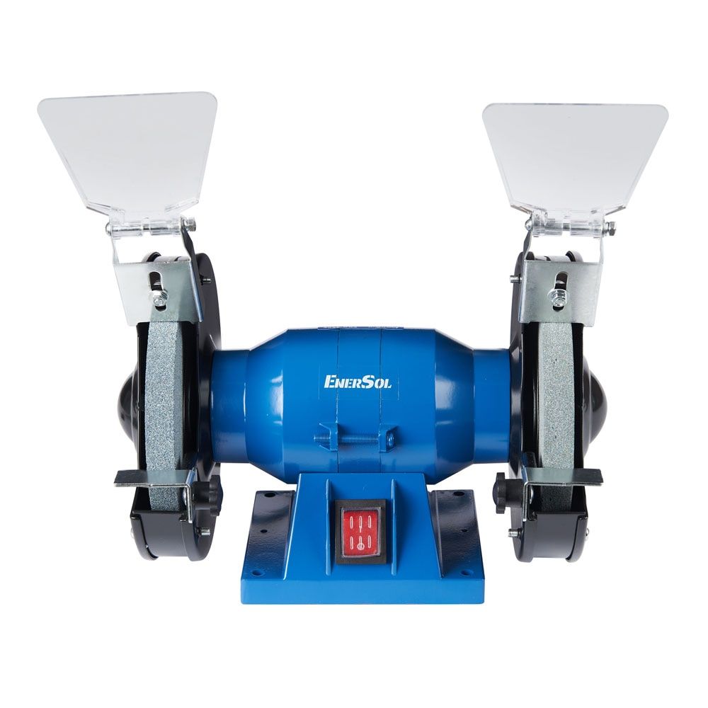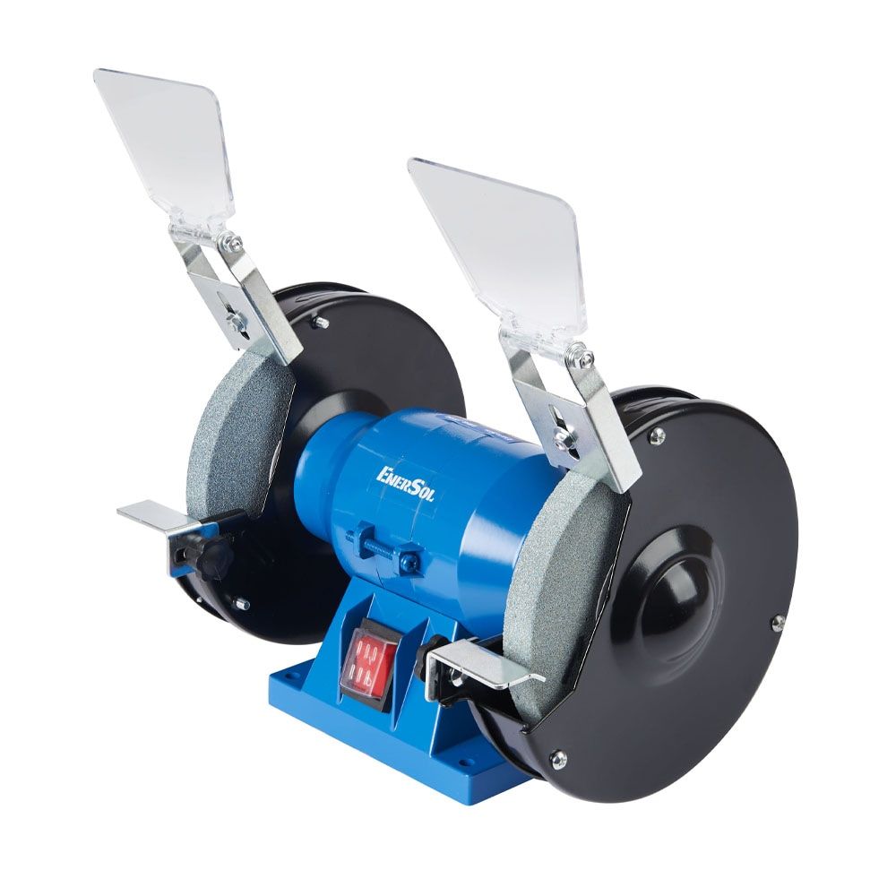Верстат заточувальний EnerSol EBG-150E з двома абразивними кругами діаметром 150 мм і потужністю 150 Вт призначений для заточування інструменту та шліфування деталей. Швидкість обертання 2990 об/хв забезпечує стабільну роботу без надмірного нагрівання кромок. Захисні екрани, опорні площадки та гумові ніжки сприяють безпечному та комфортному використанню в обмеженому просторі.