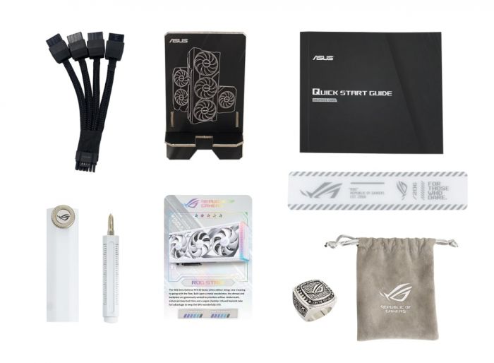 Комплектація:1 х ROG Velcro Hook & Loop, 1 x Thank you card, 1 x Speedsetup Manual, 1 x Collection card, 1 x Adapter Cable (1 to 4), ROG Ring, 1 x ROG Graphics Card Holder