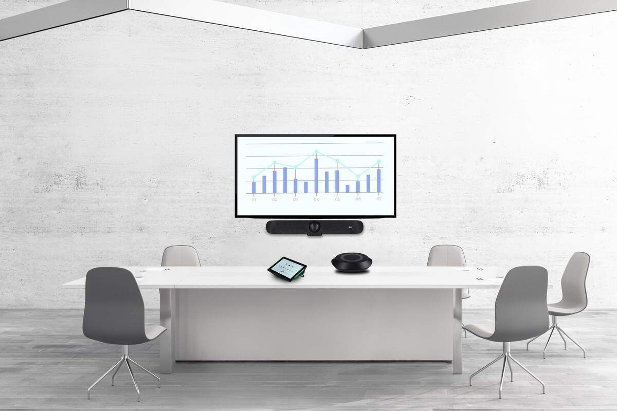 Особливості:функція Smart Composition, акустичне ехопридушення (AEC), автоматичне регулювання посилення (AGC), ТБ-ліній: 1500 (центр), баланс білого: Авто, Ручний, попередньо встановлені позиції (пресети): до 128, вбудований ШІ, Auto Framing, Voice Tracking, Audio Fence, Beamforming, попередній перегляд відео в реальному часі