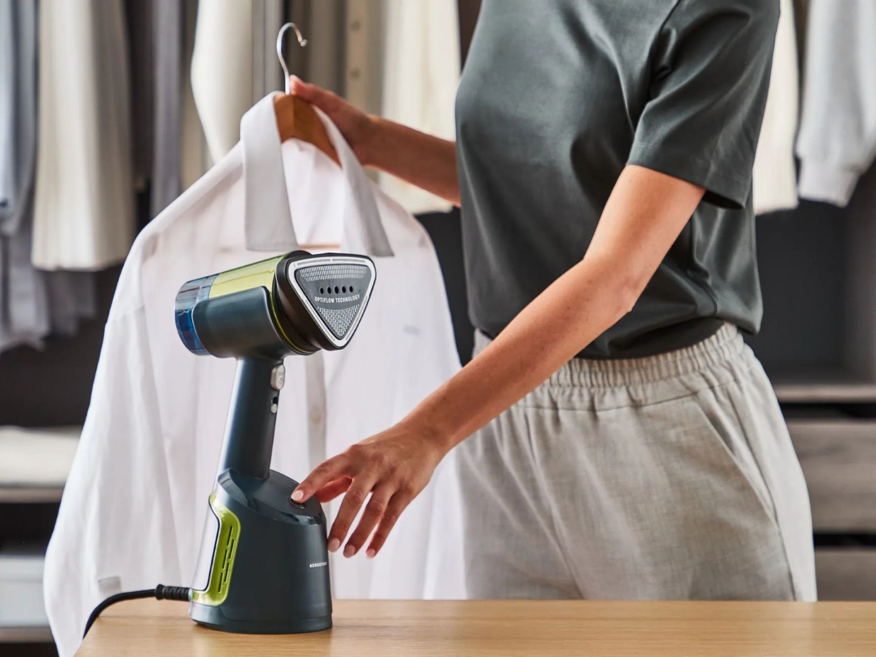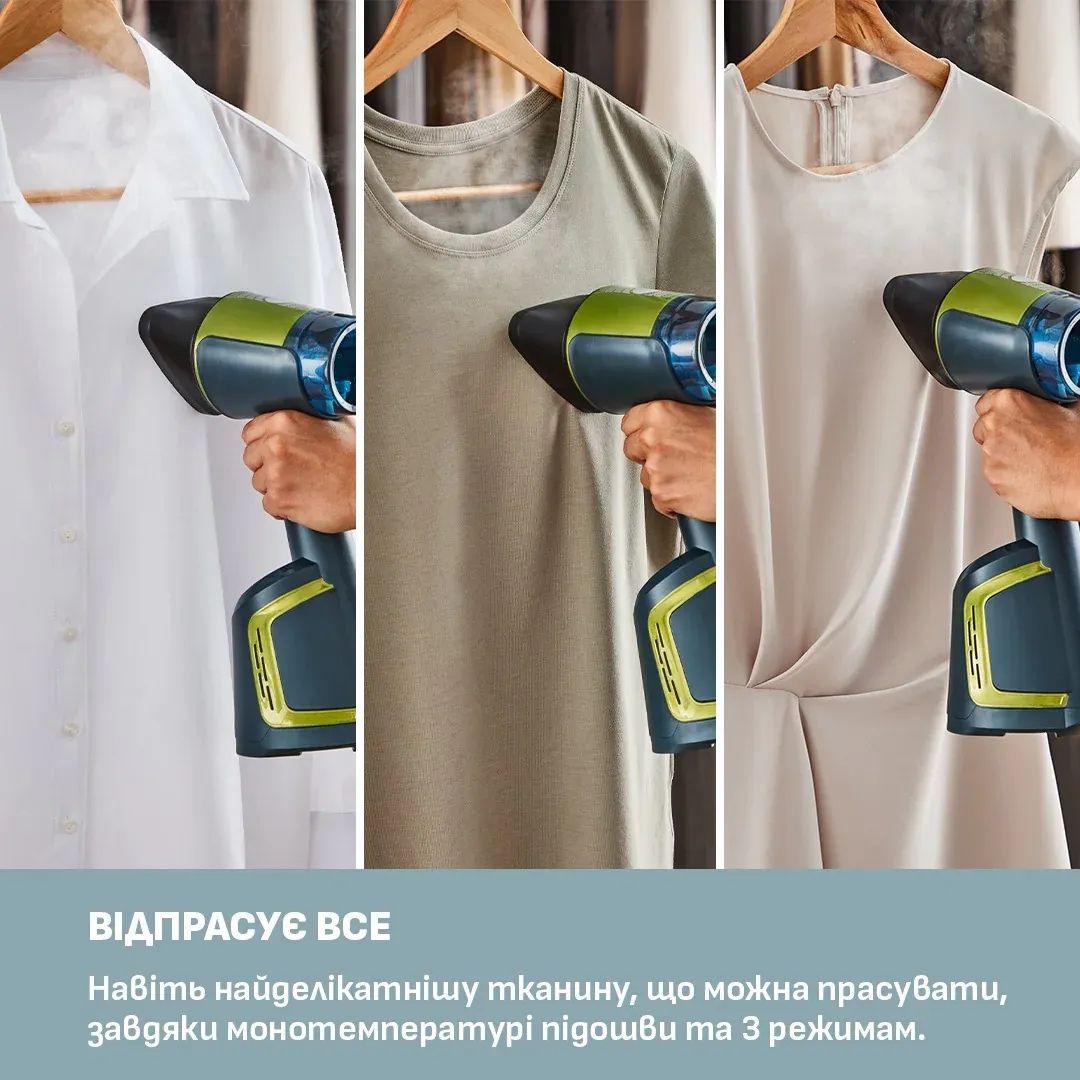 Відпарювач Tefal компактний AeroSteam, 1400Вт, 100мл, постійна пара - 20гр, чорно-зелений