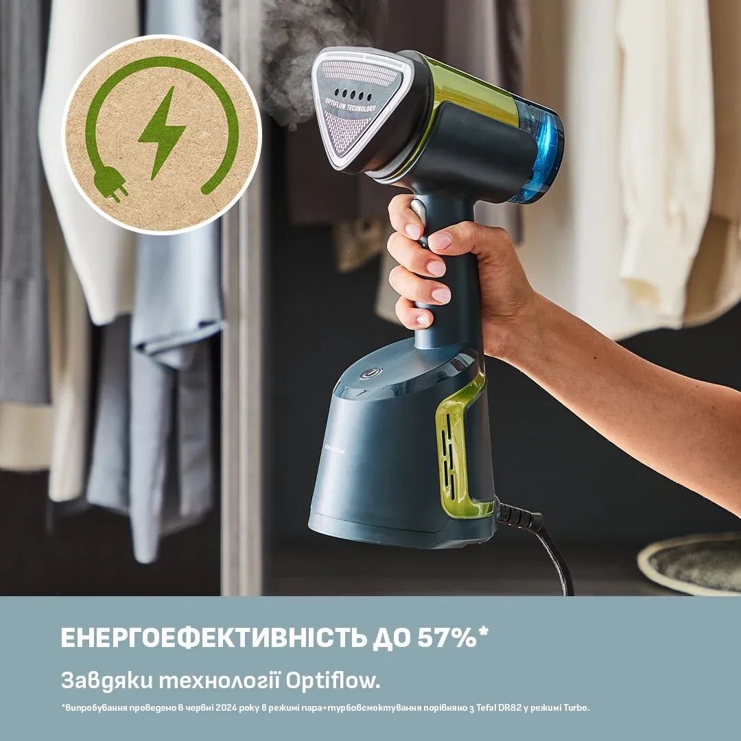 Ручний відпарювач Tefal AeroSteam DT9810F0 з технологією OptiFlow — це поєднання потужної пари та всмоктування тканини для результату як після прасування. Ідеальний для делікатного текстилю, синтетики та бавовни. Має 3 режими, знімний бак 100 мл та шнур живлення 2,6 м.