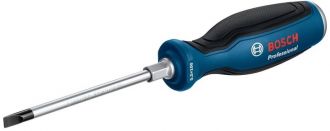 Викрутка Bosch SL5.5 Professional надзвичайно міцна завдяки суцільному металевому стрижню, який також проходить через ручку, металевому ударному наконечнику та загартованому наконечнику. Ергономічна форма та м'яка поверхня рукоятки забезпечують комфорт, а інтегрований шестигранне гніздо дає змогу застосовувати додатковий крутний момент. Підходить для загвинчування, довбання та відкручування тугих гвинтів..