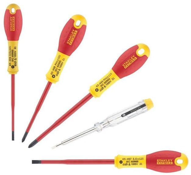 Набір ізольованих викруток електрика FatMax VDE 1000V відповідають промисловому класу безпеки EN60900:2004 під час роботи з відкритими струмопровідними елементами під напругою до 1000 В. Великі ергономічні рукоятки забезпечують високий момент, що крутить, і максимальний комфорт при роботі.