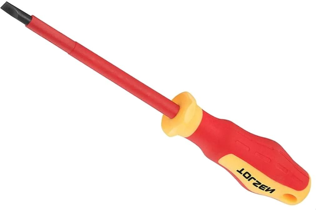 Tolsen Профі SL3x75 мм — це плоска діелектрична викрутка для безпечної роботи з електричними мережами до 1000 В. Виготовлена зі сталі CrV, вона забезпечує надійність та довговічність, а ергономічна ручка з діелектричним покриттям гарантує комфорт та безпеку.