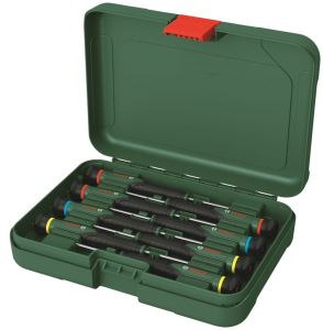 За допомогою високоякісного набору прецизійних викруток Bosch можна швидко та ефективно відремонтувати невеликі електронні пристрої, окуляри, ноутбуки або годинники. Набір містить 8 прецизійних викруток (SL1.5, SL2.5, SL3.0, PH00, PH0, TX5, TX6, TX8) у практичному футлярі.
