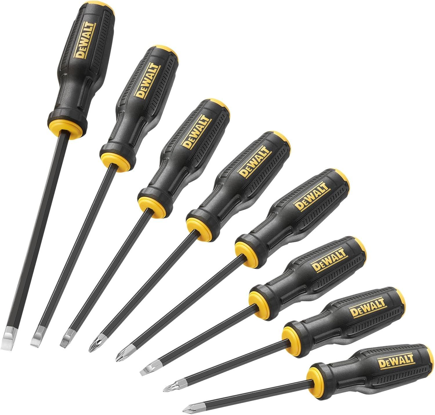 Набір викруток DeWALT — професійне рішення для монтажу, електромонтажних і ремонтних робіт. Прецизійні магнітні наконечники MAX FIT покращують контакт зі шліцом і зменшують зісковзування. Стрижні зі сталі S2 з покриттям black chrome забезпечують високу міцність і корозійну стійкість.