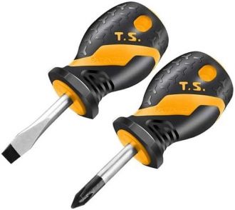 В комплект входять 2 короткі викрутки Tolsen STUBBY, призначені для роботи в дуже обмеженому просторі. Робоча частина виготовлена з інструментальної CrV сталі. Матеріал відрізняється високою твердістю і міцністю, що робить вироби зносостійкими та подовжує термін їх служби.