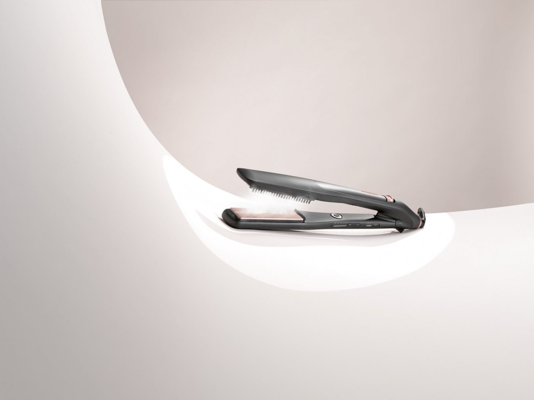 BaByliss Steam Luxe Styler — професійний паровий випрямляч для волосся з потужністю 56 Вт, 5 температурними режимами і широкими керамічними пластинами з технологією Titanium Ceramic. Завдяки функції мікропари забезпечує глибоке зволоження та ефективне вирівнювання волосся без пересушування. Оснащений висувними гребінцями для легкого розчісування, світлодіодною індикацією, кабелем 2,5 м і термокилимком у комплекті. Ідеально підходить для створення гладкої, блискучої зачіски в домашніх умовах.