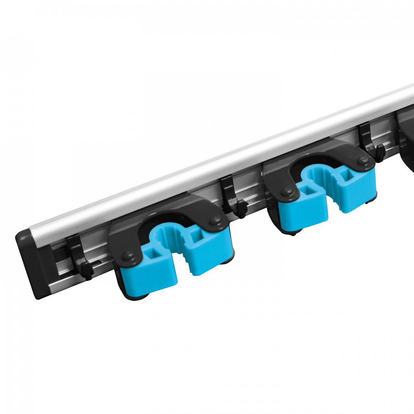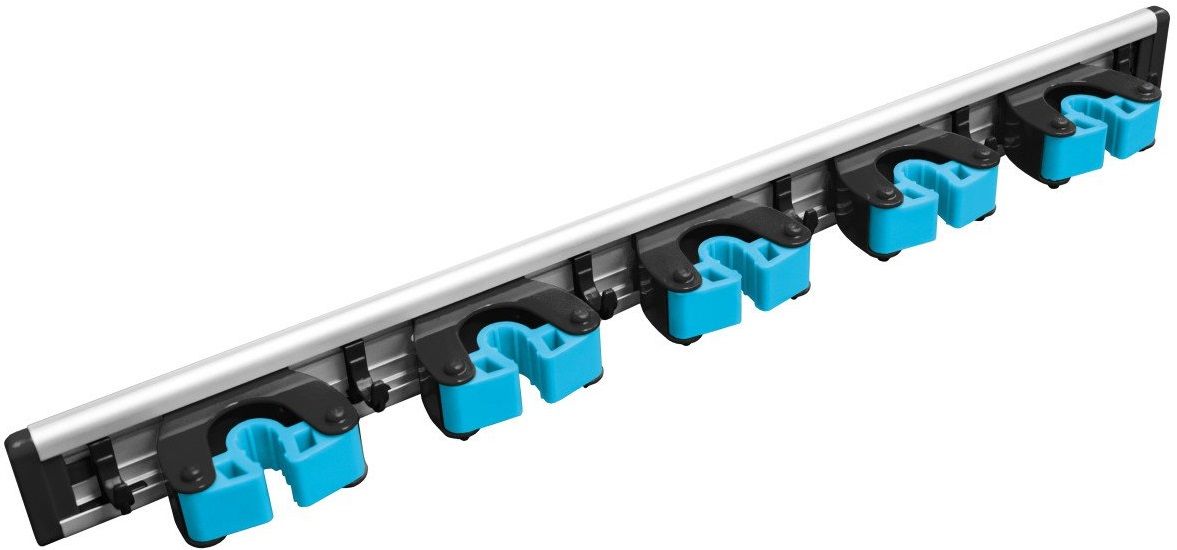 Міцна конструкція вішалки з корозійностійкого алюмінію. П'ять міцних самофіксувальних ручок дають змогу кріпити будь-які інструменти та приладдя, відстань між ними можна регулювати в міру необхідності, переміщаючи по горизонталі.