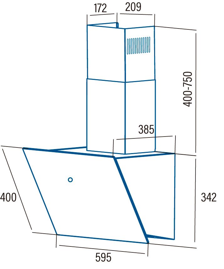 Витяжка Cata похила, 60см, 500м3год, LENA 600 XGBK, чорний.