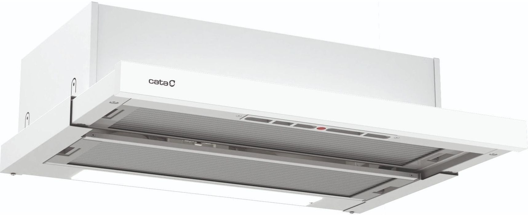 Cata TFK 6005 (02034505) — телескопічна витяжка 60 см у білому кольорі, продуктивністю 360 м³/год та класом енергоефективності B. 2 швидкості, механічне керування слайдером, яскраве LED-освітлення та миючі алюмінієві фільтри. Повністю ховається у шафу, ідеально вписується у світлі кухні та чудово справляється з запахами на кухнях до 12–15 м².