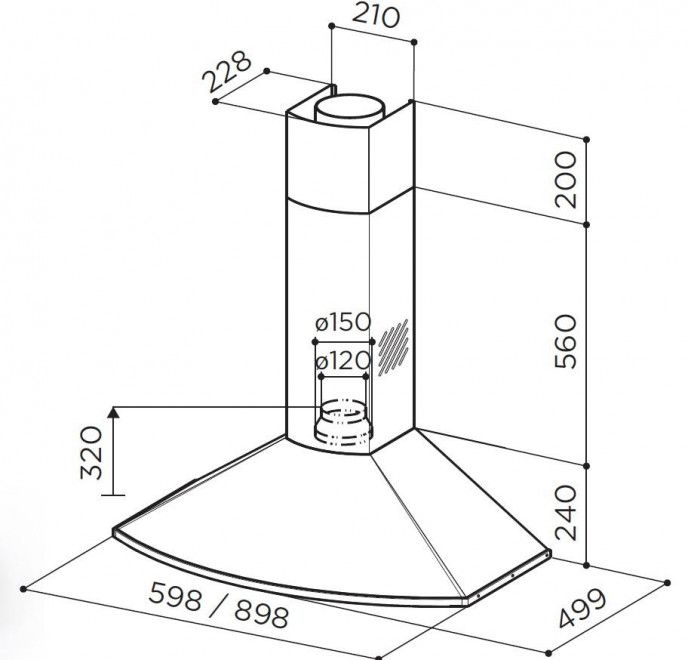 Вигнуті лінії створюють нову класичну форму вытяжки з м'яким та округлим малюнком. Витяжка має купольну форму і виготовлена з нержавіючої сталі, що надає їй стильний і сучасний вигляд. Вона відмінно впишеться в будь-який кухонний інтер'єр і додасть йому елегантності. Витяжка має вбудоване освітлення, яке надає достатньо освітлення на робочій поверхні кухні. Витяжка використовує потужний вентилятор для ефективного видалення диму, пару, запахів та жирних частинок з повітря. Це допомагає підтримувати чисте та свіже повітря у кухні.