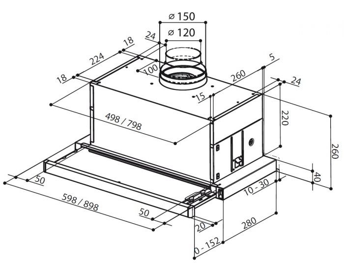 Тип витяжки:телескопічна