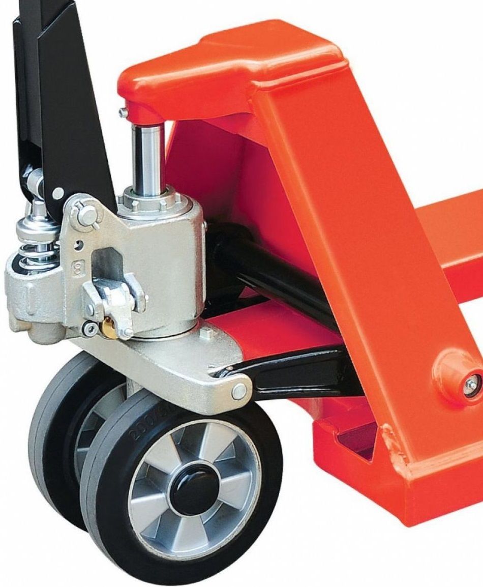 Гідравлічний ручний візок Skiper SKF-III 25 1150PP Profi (Рокла) — це надійний інструмент для транспортування палетованих вантажів на складах, у магазинах і виробничих приміщеннях. Вантажопідйомність 2500 кг, довжина вил 115 см, мінімальна висота 8.5 см. Посилений гідравлічний вузол забезпечує довговічність і плавну роботу. Міцна рама і посилені вила дозволяють візкам витримувати інтенсивні навантаження на складах будь-якого розміру.
