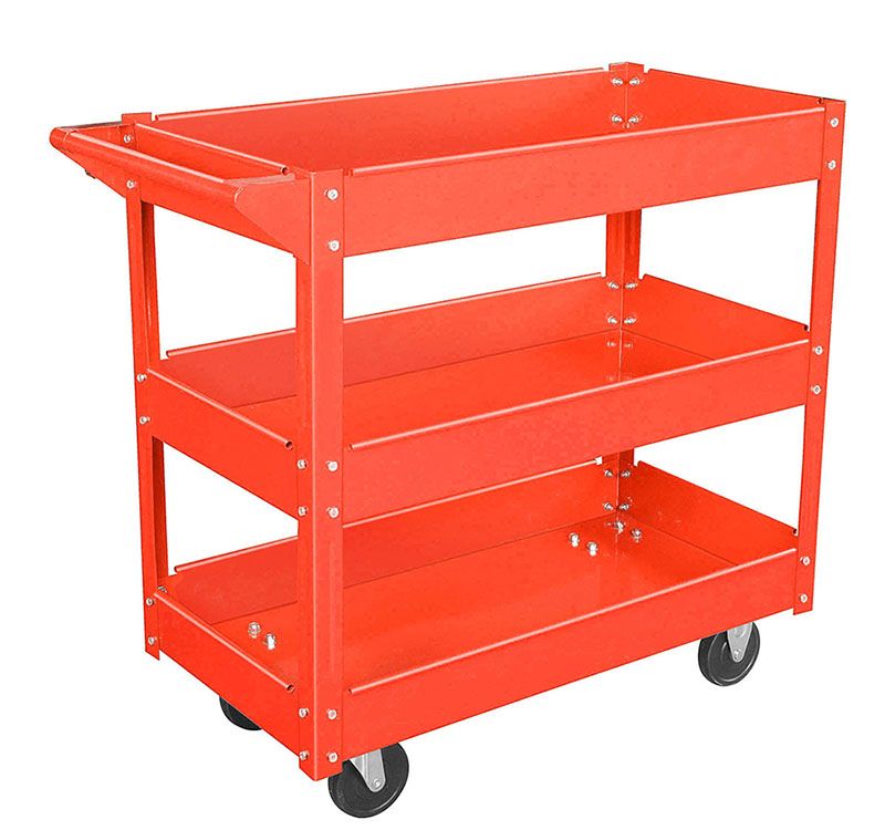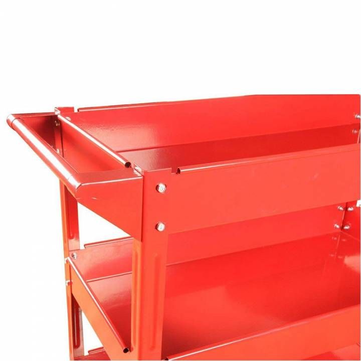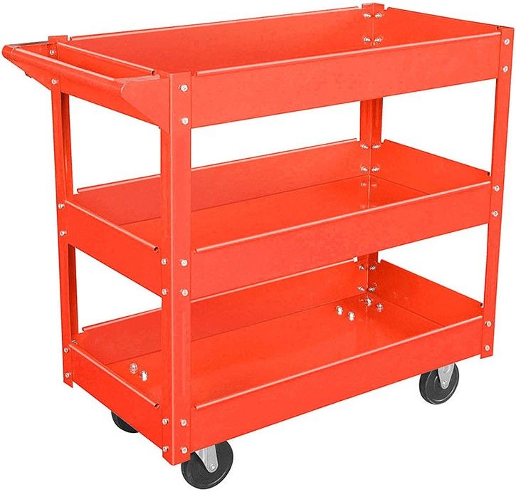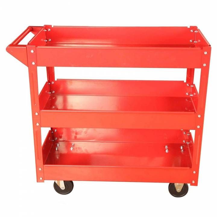 Візок вантажний Tolsen 80221 із металевою конструкцією та 3 рівнями полиць ідеально підходить для зберігання й переміщення предметів у майстернях, гаражах, салонах або на складах. Розмір: 84 × 41 × 78 см, полиці розташовані на висоті 90, 390 і 740 мм. Оснащений 4 колесами для зручного переміщення, бортики запобігають випаданню предметів.
