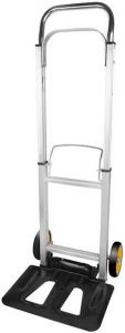 Візок вантажний Tolsen 62602 із платформою 24,5 × 38,5 см та вантажопідйомністю до 90 кг оснащений легкою алюмінієвою рамою з телескопічною руків'ям із хромованої труби. Компактна складна конструкція забезпечує зручне зберігання, а висота у складеному стані становить 715 мм, у розкладеному — 1080 мм. Ідеальний для транспортування легких вантажів у побуті та офісі.