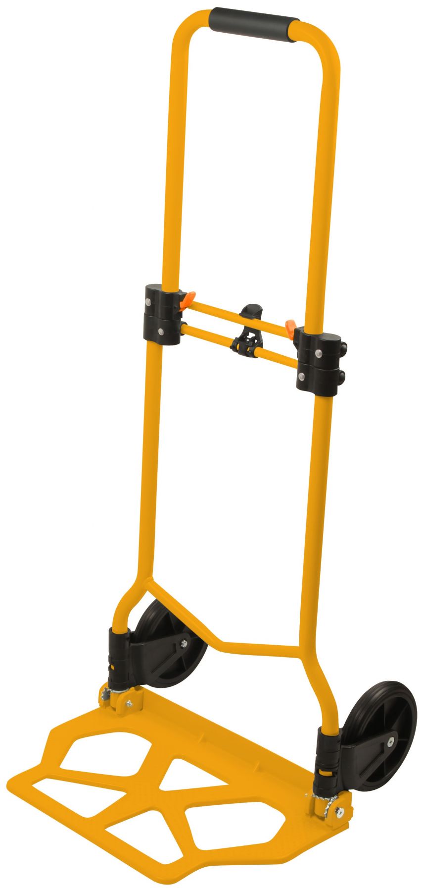 Візок вантажний Tolsen 62600 для переміщення великих предметів із вантажопідйомністю до 70 кг. Оснащений міцною трубчастою рамою зі сталі та платформою 275 × 420 мм. Гумові поворотні колеса 150 мм (6") забезпечують легке транспортування. Компактна складна конструкція дозволяє зручно перевозити візок. Відповідає стандартам TUV/GS. Габарити: 425 × 420 × 980 мм.