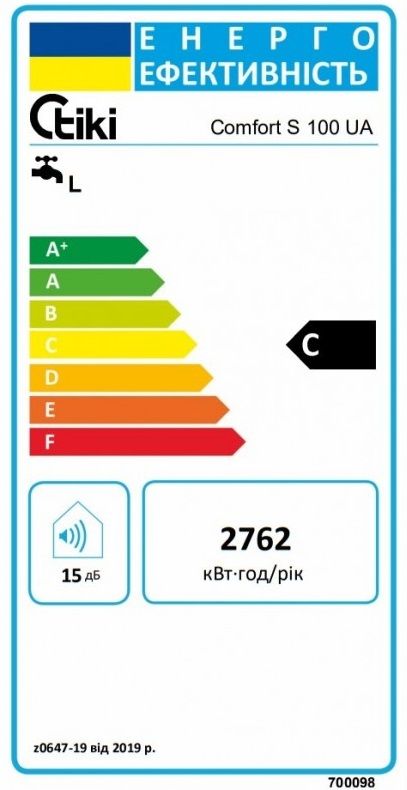Водонагрівач електр. Tiki круглий GBF, 100л, 2кВт, сухий тен, мех. кер-ння, C, білий, 700098