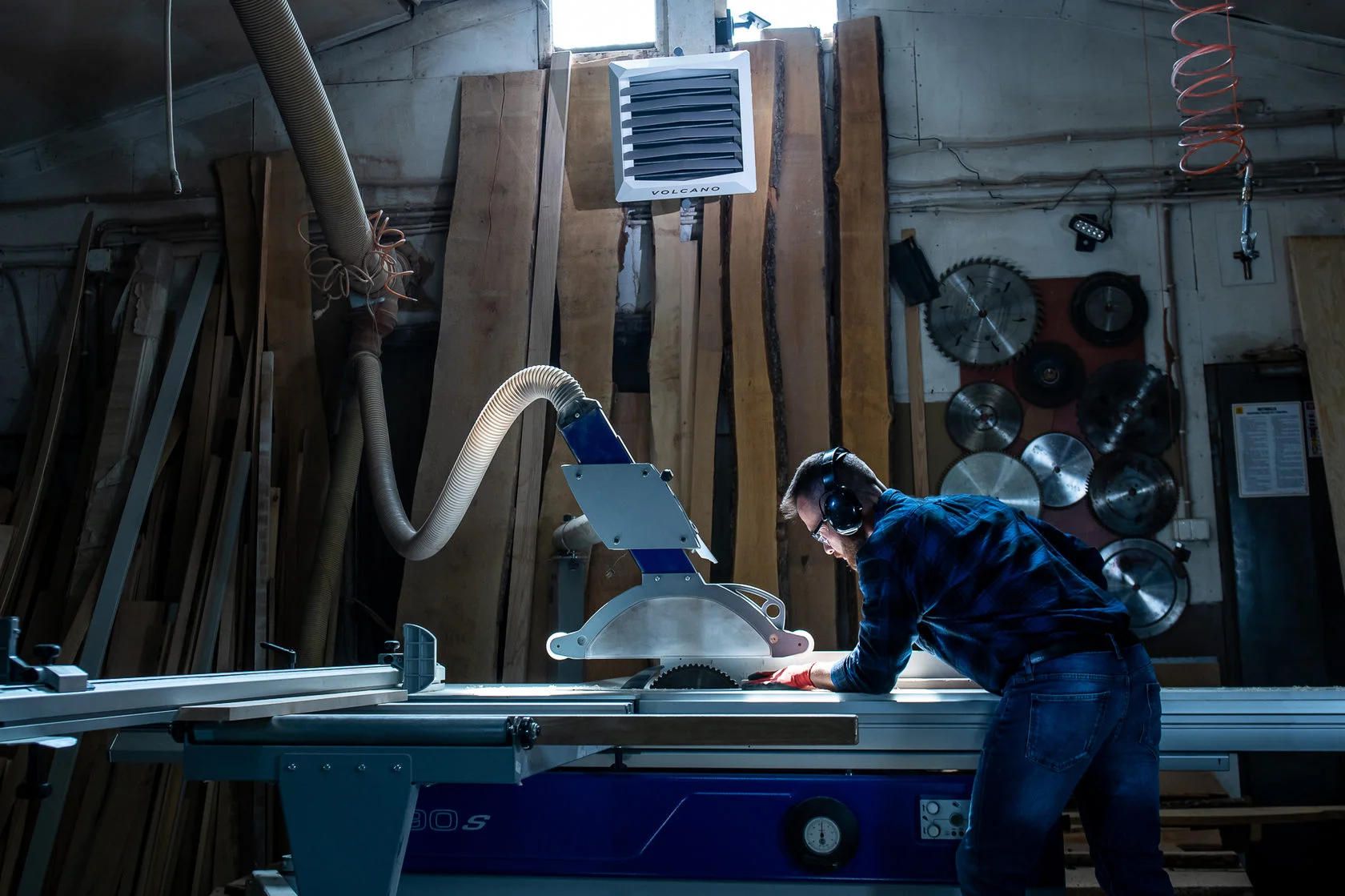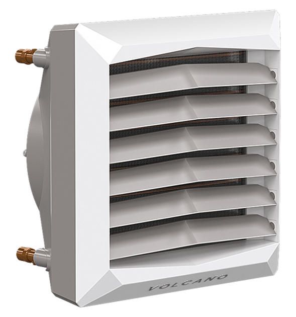 Volcano VR Mini AC від EuroHeat – водяний тепловентилятор потужністю 20 кВт для ефективного опалення та охолодження приміщень з використанням гарячої води 90°C. Вентилятор розподіляє тепле повітря в чотирьох напрямках на відстань до 14 м горизонтально та 8 м вертикально, не потребуючи вуличного повітря.