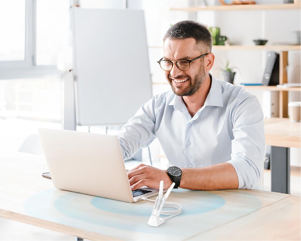 WiFi-адаптер D-Link AE65U BE7300 підключається через USB 3.0 і забезпечує тридіапазонне з'єднання Wi-Fi 7 (2,4 / 5 / 6 ГГц) з підтримкою Multi-Link Operation. Дві зовнішні антени, що регулюються на 180°, разом зі знімною підставкою дозволяють оптимізувати прийом сигналу в різних умовах розміщення. Адаптер сумісний з Windows 10 та Windows 11, підтримує WPA3 і підходить для оновлення старих ПК до сучасного стандарту бездротового зв’язку.