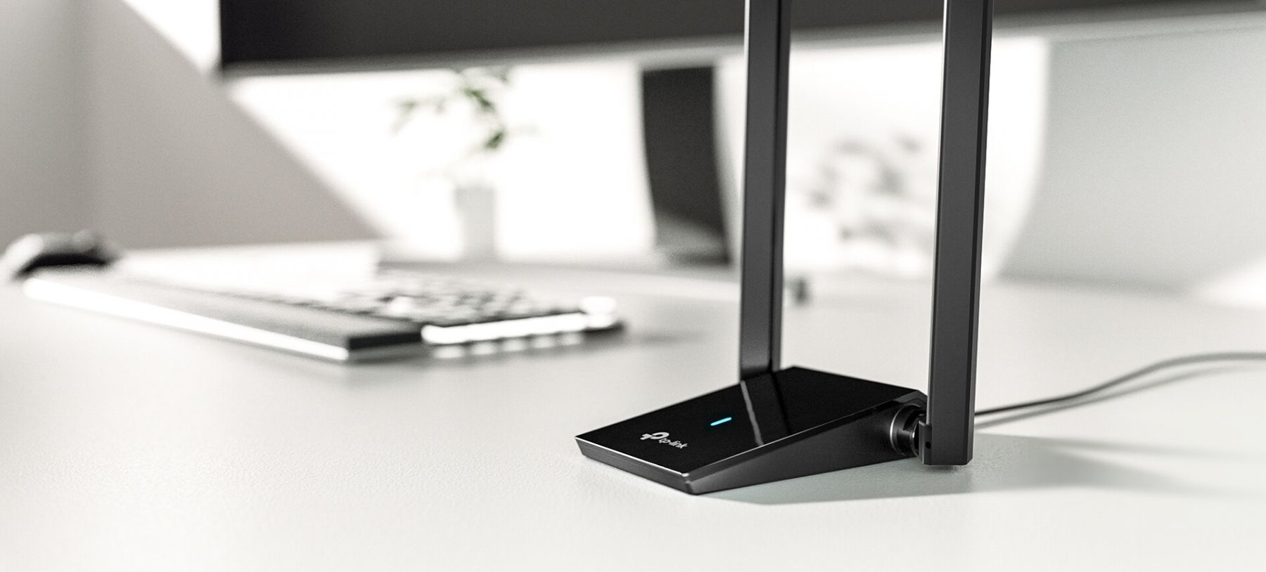 Потужний USB-адаптер Wi-Fi 6 з двома антенами з високим посиленням забезпечує швидкість до 1800 Мбіт/с (1201 Мбіт/с на 5 ГГц і 574 Мбіт/с на 2,4 ГГц). Завдяки технологіям MU-MIMO та OFDMA адаптер знижує затримку та стабілізує з’єднання навіть у навантажених мережах.