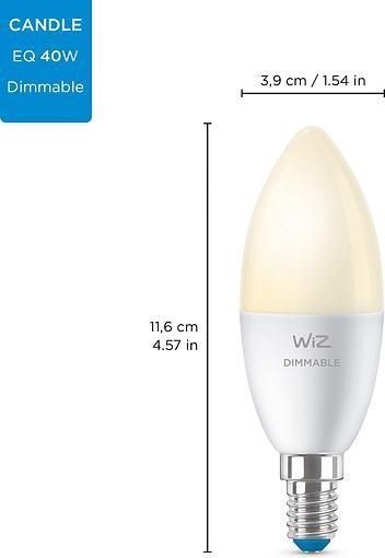 Лампа розумна WiZ, E14, 4.9W, 40W 470Lm, C37, 2700K, Wi-Fi