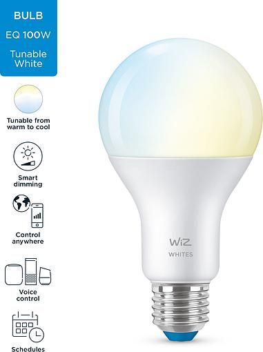 Керована по WiFi лампа E27 13W(100W 1520Lm) A67 2700-6500K Wi-Fi. Миттєва готовність до використання. Керування з будь-якого місця. Регульований теплий та холодний білий колір, а також попередньо задані режими. Автоматичне вімкнення освітлення за розкладом. Інтелектуальна лампа WiZ A67 з високим освітленням забезпечує будь-який відтінок теплого або холодного білого світла для стандартних світильників у вашому будинку. Використовуйте з WiZ або своїм голосом, щоб затемнити і зробити яскравіше, або використовуйте встановлені режими освітлення в налаштуваннях Wi-Fi.