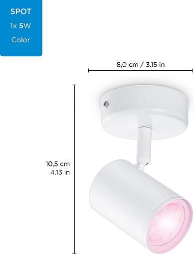 Розумний накладний точковий світильник WiZ Imageo білого кольору з можливістю керування WiFi. Для яскравого та насиченого кольорового освітлення створить приємну атмосферу та прикрасить ваш будинок. Широка кольорова гама забезпечує найбільш відповідне освітлення для вашого повсякденного життя. Для концентрації та підвищення продуктивності використовуйте холодне світло, а для того, щоб розслабитись та приємно провести час – м'який теплий білий колір.