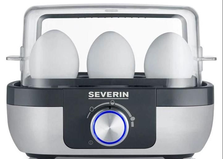 Яйцеварка Severin EK3169 (420 Вт) дозволяє одночасно зварити до 6 яєць із точним регулюванням ступеня готовності — від «некруто» до «круто». В комплекті є насадка для яєць-пашот, омлету та приготування овочів на пару. Звуковий сигнал, світлова індикація, захист від перегріву та 100% відсутність BPA роблять її безпечною та зручною у щоденному використуванні.