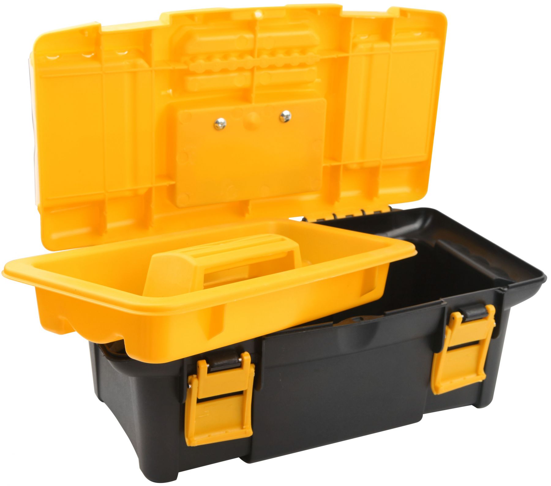 Інструментальний пластиковий ящик вагою 670 г призначений для зручного зберігання і переносу інструментів з місця на місце. Підходить для майстерні, гаражу, СТО тощо. Модель виконана в фірмових кольорах бренду Tolsen Tools. Ящик розмірами 340x180x130 мм оснащений 2-ма знімними органайзерами. Лоток з ручкою і 8-ма секціями дозволяє зручно розмістити інструмент по категоріях, що полегшує їх пошук для користувача.