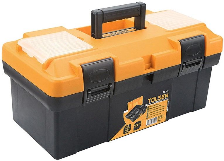Інструментальний пластиковий ящик вагою 1.5 кг призначений для зручного зберігання і переносу інструментів з місця на місце. Підходить для майстерні, гаражу, СТО тощо. Модель виконана в фірмових кольорах бренду Tolsen Tools. Ящик розмірами 420х230х190 мм оснащений 2-ма знімними органайзерами. Лоток з ручкою і 8-ма секціями дозволяє зручно розмістити інструмент по категоріях, що полегшує їх пошук для користувача.