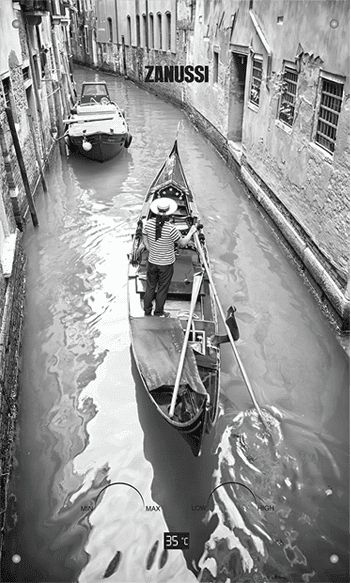 Водонагрівач газовий проточний Zanussi GWH 10 Fonte Glass потужністю 18.5 кВт і унікальним дизайном. Є LED-дисплей, на якому відображається температура нагріву води.