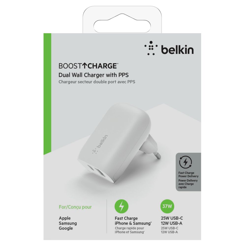 Зарядний пристрій мережевий Belkin 37Вт USB-C PD PPS 25Вт, USB-A 12Вт, білий