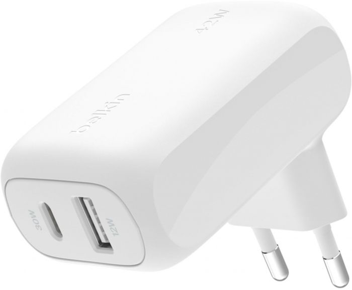 Зарядний пристрій мережевий Belkin 42Вт USB-C PD PPS 30Вт, USB-A 12Вт, білий
