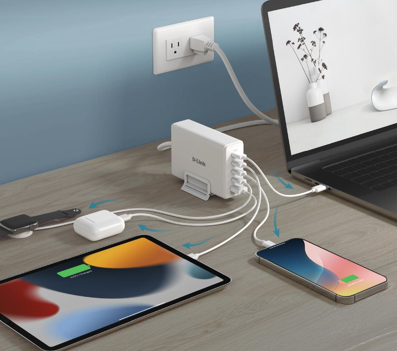 Зарядний пристрій мережевий D-Link DCF-241 240Вт GaN 4хUSB-С, 1xUSB-A, білий